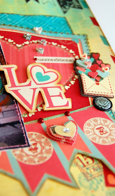 some small rhinestones on the hearts to add some sparkle to the layout.