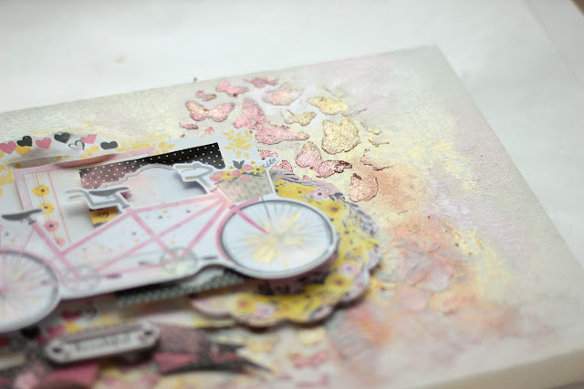 I've got to share with you a fun canvas I made using the beautiful Petal Lane collection and many fun Pentart mixed media products.