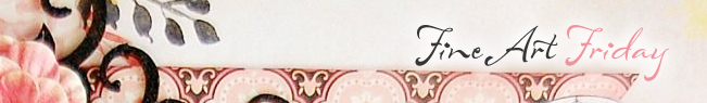 In my second version I started to add some paint. I started with a lace stickable stencil and 3D paste and covered an area around my photo - I did it really roughly so it looked distressed. I then added some Pink and Antique gold Pentart Creamy Acrylic with white gesso over the top - I created little areas of gold and and darker areas of pink. Once this had dried I used the gold ink with one of the Take Note stamps. I also started to distress the edges of my papers.